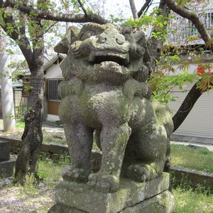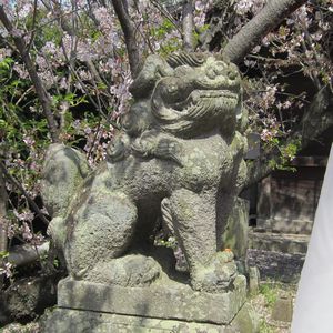 久留米方面西鉄沿線神社めぐり、4社め、護国神社から歩いて参拝しました。参道沿いは桜が満開できれいでした。残念ながら宮司さんがお留守で御朱印を頂くことはできませんでした。出直しです。狛犬さんの風貌は日吉神社の狛犬さんに似ていました。同じころにつくられたのかもしれません。