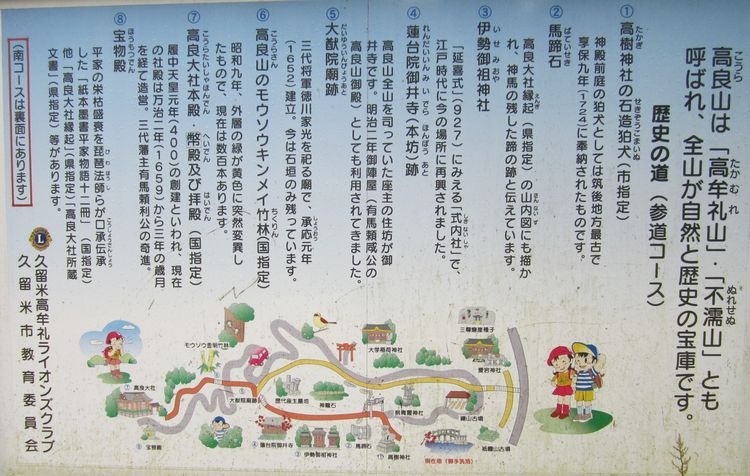 裏参道の鳥居、社名には高良玉垂宮とあります。