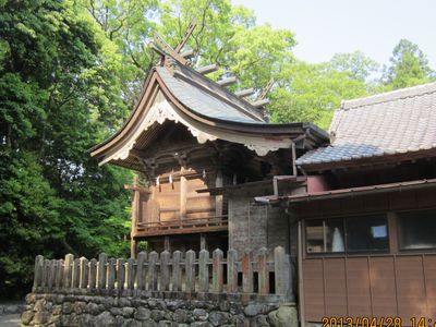 宮崎神社めぐり2日め、8社めの参拝は比木神社、村の氏神様といった感じですが、創建は古く、1800年前とのことです。参拝に訪れたときに、ちょうど若い夫婦が、子供のお宮参りのお払いを受けているところでした。宮崎の神社は、参道が木々に覆われ厳かな雰囲気を漂わせ、その先に本殿が鎮座しているというようなところが多く、ここも大きな神社ではありませんが、そうした雰囲気の神社でした。社殿の屋根の上をふと見ると、大黒様か恵比寿様か、小さな像が右と左に立っていました。御祭神に大黒様と恵比須様とあることから、おそらくその像でしょう。