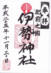 佐賀方面神社巡り、7社めは伊勢神社、「九州のお伊勢さん」、と呼ばれている神社だそうです。護国神社の裏手、すぐ近くに鎮座しておりました。地元の人たちに親しまれているのか、私がお参りしたときに、数人のお年寄りが、入り口の神門に腰掛けて涼んでおりました。残念がながら宮司さんがお留守で御朱印はいただけませんでした。