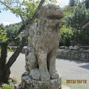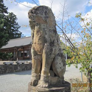 少し痛んだ狛犬さん、出雲の狛犬さんは大きめです。