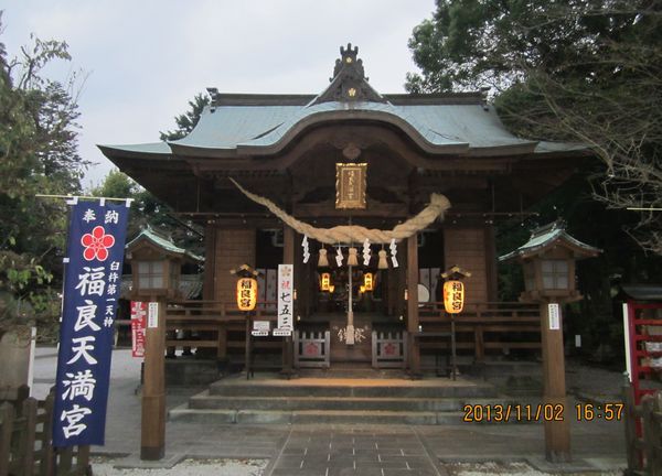 大分市を中心にレンタカーでの神社巡り、15社め、本日最後の参拝は臼杵市の福良天満宮です。佐賀関から海岸沿いを進み、川沿いの街中でもある山の上に鎮座しています。映画寅さんのロケ地にもなったようです。参道は山を登る階段で、境内からは臼杵市を一望することができます。時刻は5時近く、薄暗くなってきていました。参拝後、社務所は閉じられていましたがだめもとでインターホンで呼びかけてみると、神職の方が出てこられて、快く対応してくださいました。
