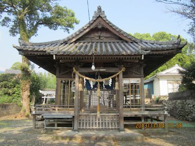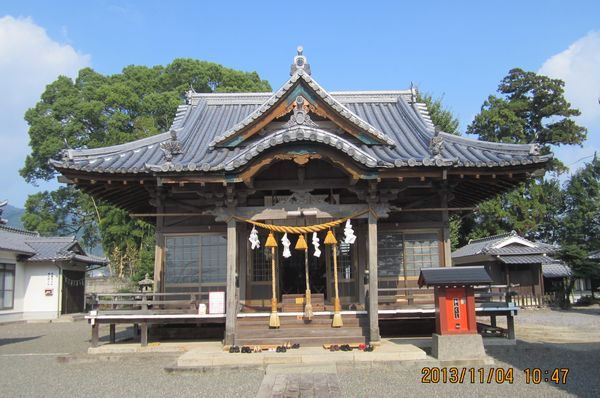 別府市を中心としたレンタカーでの神社めぐり、3社めは日出町の若宮八幡宮です。日出町と書いて“ひじ”まちと読むのだそうです。竈門神社の宮司さんに教えてもらいました。大分には若宮八幡の名がつく神社が多いですが、ここは若宮八幡社ではなく、若宮八幡宮であり、格が高いのでしょうか。立派な楼門、神楽殿、絵馬殿を備えた神社です。参拝に訪れとき、七五三の御祈祷の真っ最中で、参拝後、境内を散策しながら御祈祷が終わるのを待って御朱印を頂きました。