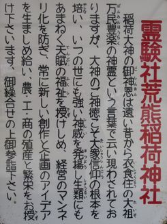 【御祭神】 荒熊稲荷大明神(あらくまいなりだいみょうじん)
