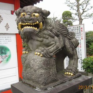 拝殿前の狛犬さん、迫力あります。