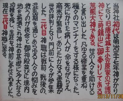 佐賀方面3回目の神社巡り、4社めの参拝は、伊万里市に鎮座する荒熊稲荷神社です。嬉野から伊万里に向かう途中、一瞬だけ長崎県に入りました。私にとって初めての長崎県入りです。荒熊稲荷神社は、稲荷神社ではありますが、拝殿のまわりにはたくさんの境内社があり、ご利益のある、ありとあらゆる神社を祀っているのではないと思われるくらいです。境内入り口近くには招き猫までありました。拝殿は広く、集会場のような構造で、一度に多くの人がお参りできるようになっています。御朱印は拝殿の中で頂きました。