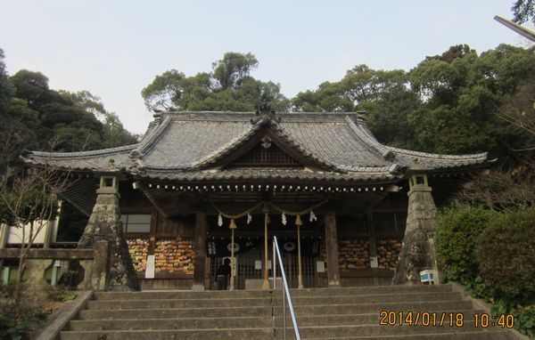 諫早・島原方面神社巡り、2社めは諫早公園に面して鎮座する高城神社です。諫早神社から本明川沿いの道路を歩いていくと、諫早城跡の小高い山が見え、その脇を抜けたところが諫早公園の入り口で眼鏡橋が現れます。諫早公園を散策したあと公園の南側に鎮座する高城神社を参拝しました。御祭神は、諫早家初代龍造寺家晴公で、明治15年に高城神社として創建された、比較的新しい神社です。御朱印は、境内にある社務所で頂きました。