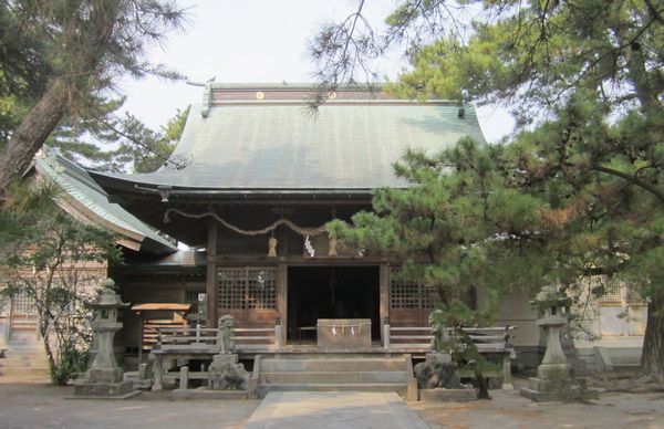 諫早・島原方面神社巡り、3社めは島原市の海岸沿いに鎮座する猛島神社です。諫早から島原鉄道に乗って島原へ、ローカル線の旅といった感じでした。島原駅からみて島原城と反対の方向、海岸沿いに鎮座しています。午前中に参拝に訪れたのですが、神社関係の方がどなたもいらっしゃらず、島原城見学、温泉に入った後、夕方に再度参拝しましたが、やはり留守でした。境内で草刈をしていたおじさんが、神社の方と親しいらしく、頼まれて片づけをしているとのことで、帰りの高速バスの時間まで約1時間、世間話をしながら宮司さんの帰りを待つことにしました。バスの時間が間近になり、あきらめて帰りかけたところに、宮司の息子さんが帰ってこられ、ぎりぎりで御朱印をいただくことが出来ました。おじさんも、自分のことのように喜んでくれました。付き合っていただきありがとうございました。