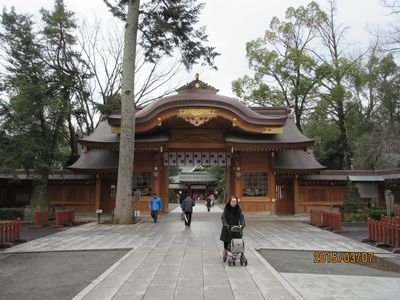 府中の大國魂神社に参拝してきました。雨が降りそうな天気でしたがなんとか持ちました。旧府中街道の、二本の大欅と大鳥居が目印、長い参道の先には随神門と中雀門の二つの門があります。創建はとても古く、歴史ある神社です。主祭神は、出雲の大国主神ですが、武蔵の国の神々も祀るようになり、武蔵総社と言われるようになったとのことです。今でも5月には御神輿がくりだす壮大な祭りがおこなわれているようです。宝物殿は、その御神輿の倉庫もかねて、徳川の朱印状などが収められいますが、日本一と言われる直径2メートル以上はあろうかと思われる大太鼓はみごとでした。