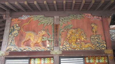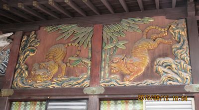 拝殿正面右側の虎の彫刻