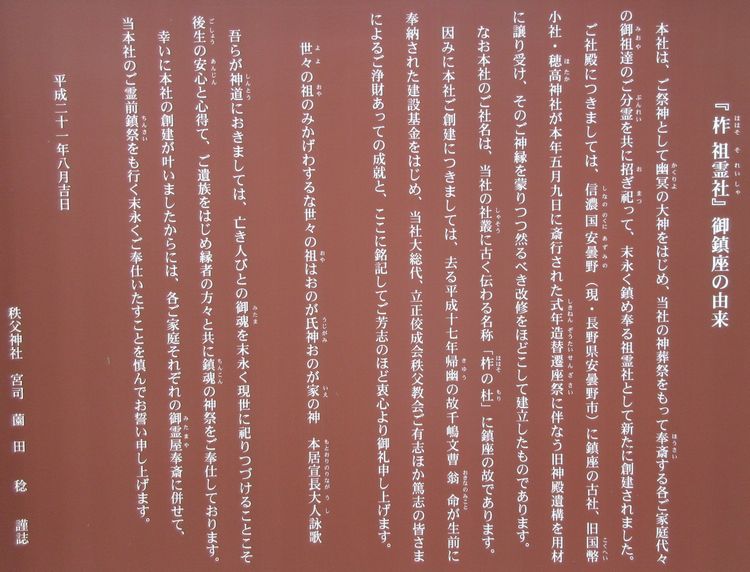 秩父神社の道を挟んで隣、秩父祭り会館の裏手に鎮座する 「柞 祖霊社」