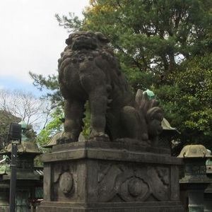 銅灯篭群、右側の狛犬さんの後ろに林立しています。