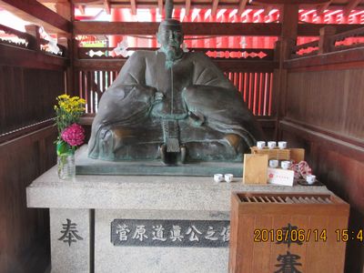 手水舎に入ったすぐ左手にある菅原道真公の座像