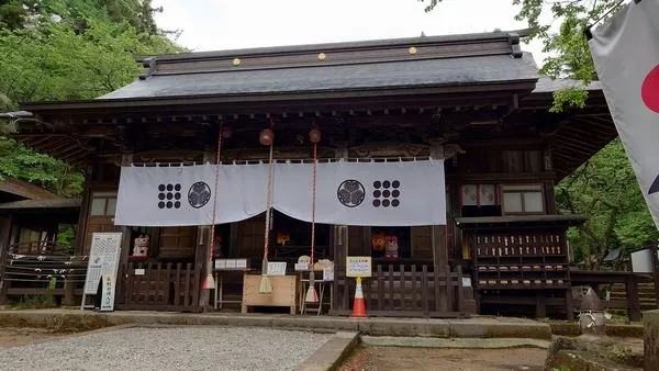 土津神社神社参拝後、5分ほど土田堰用水路沿いを歩いて参拝しました。入り口に会津五桜のひとつの「大鹿桜」がありましたが、かなりの老木でした。神社の歴史は古く、延喜式内社でもあり、創建は応仁天皇の時代までさかのぼります。先に参拝した土津神社よりもはるかに歴史があります。創建当初は磐梯山の頂上に建てられていたそうですが、聖武天皇の時代に山麓に遷移されたそうです。昭和の頃は荒れ果ててしまったそうですが、現職の宮司さんたちの努力で復興されたそうです。鳥居は宮司さんの手作りです。拝殿の右手前に社務所がありましたが、どなたもられず御朱印はいただけませんでした。